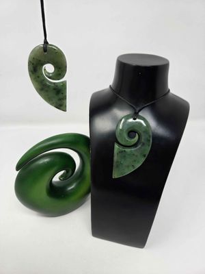 Five sets of the Kawakawa Pounamu Heart Koru Pendant Set.